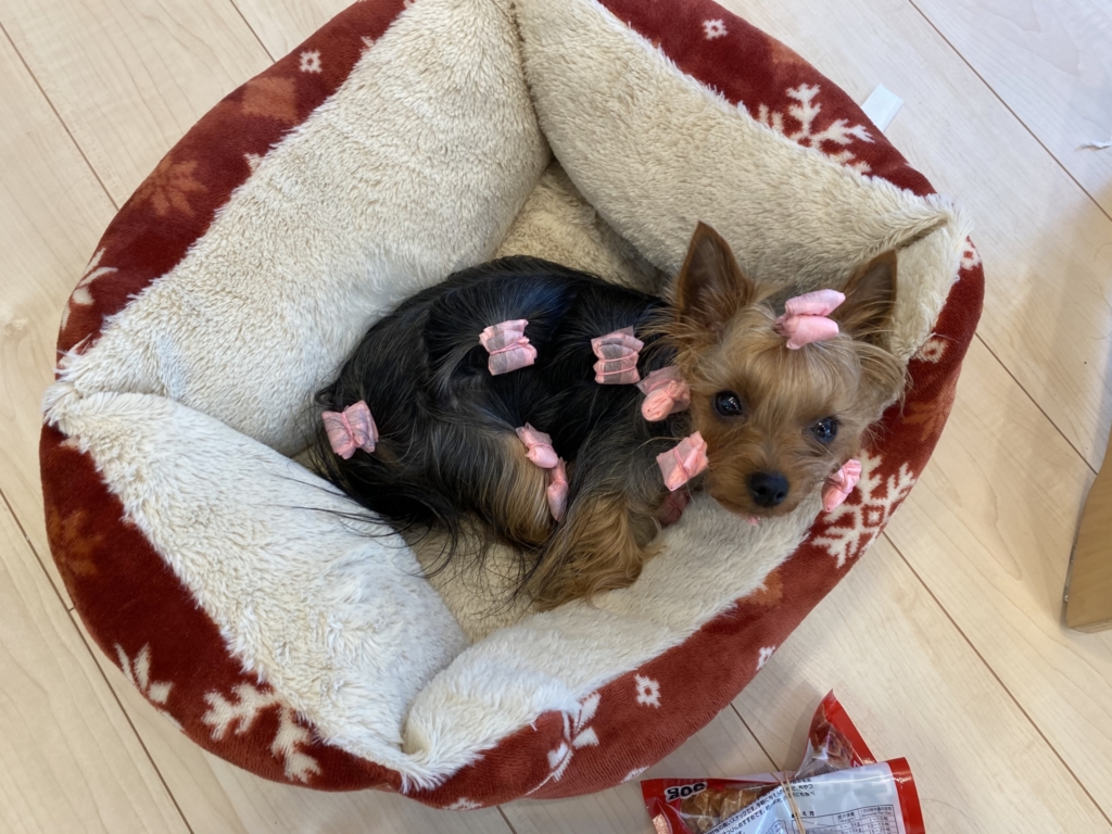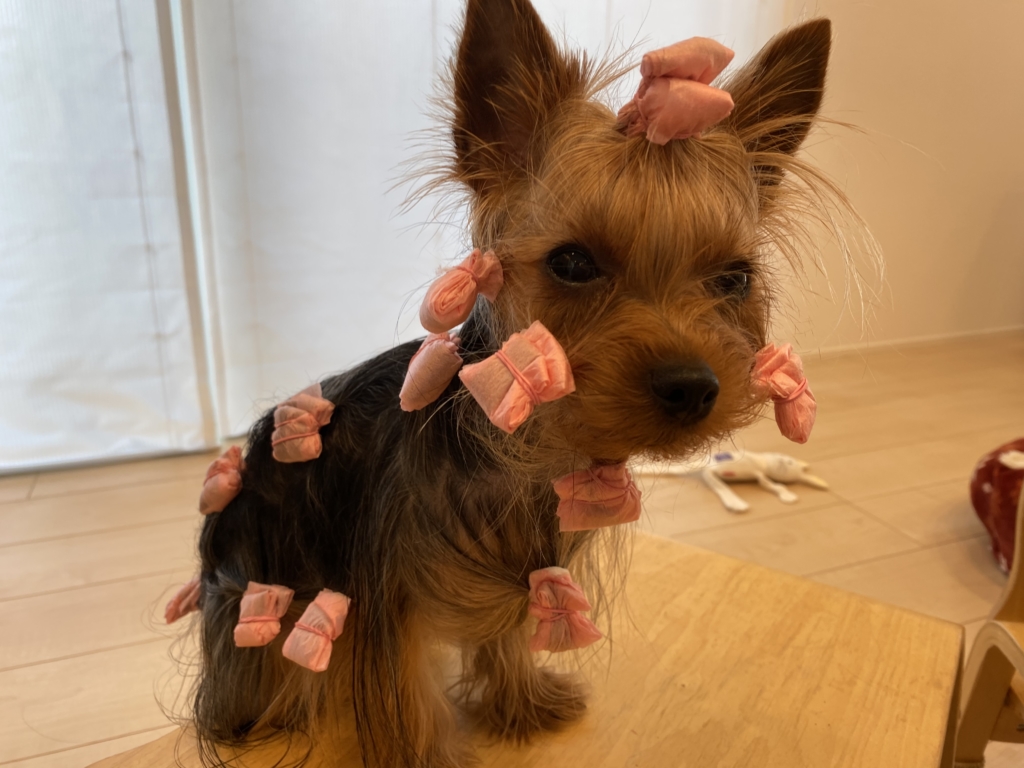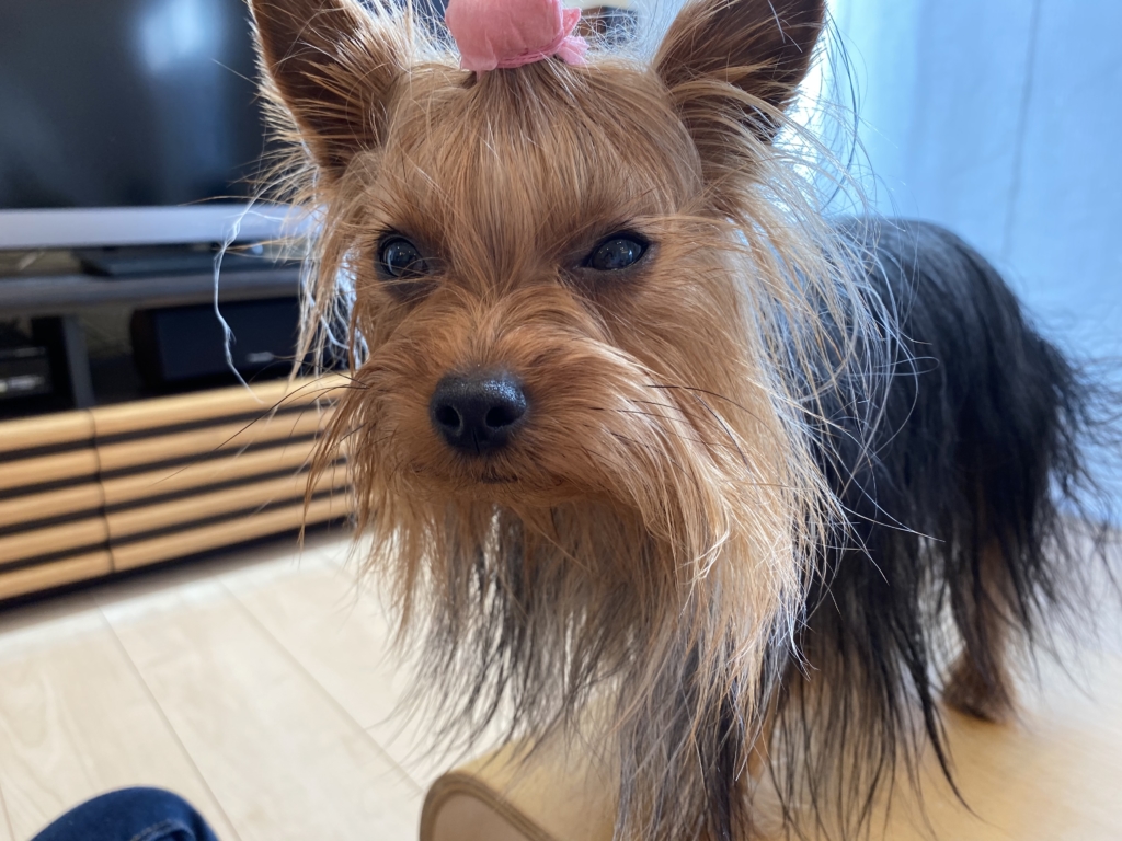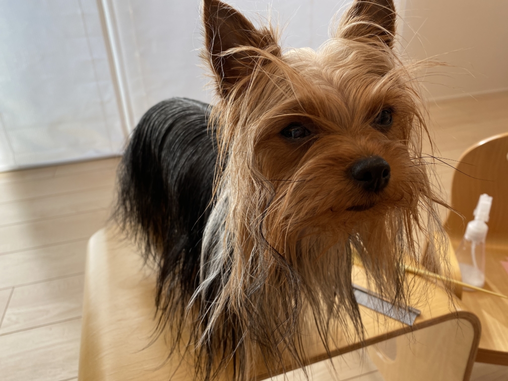 っと、我が家にお迎えした時から思っていますが、町でみかけるヨーキーちゃんは、ほぼみんなペットカットしていて、短い子ばっかり!!